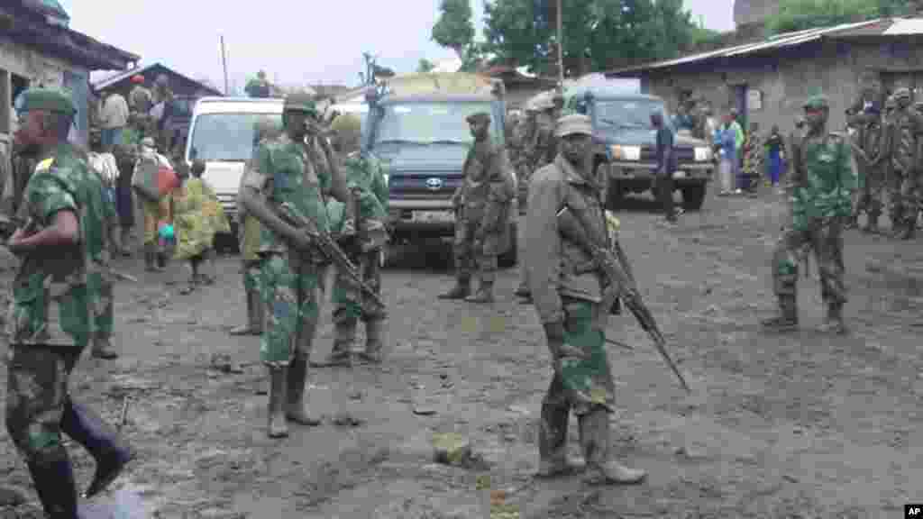 Gavana Julien Paluku awatembelea wakimbizi kijijini Kichanga wilaya ya Masissi, na kuoneshwa silaha zilizokamatwa za Bosco Ntaanda