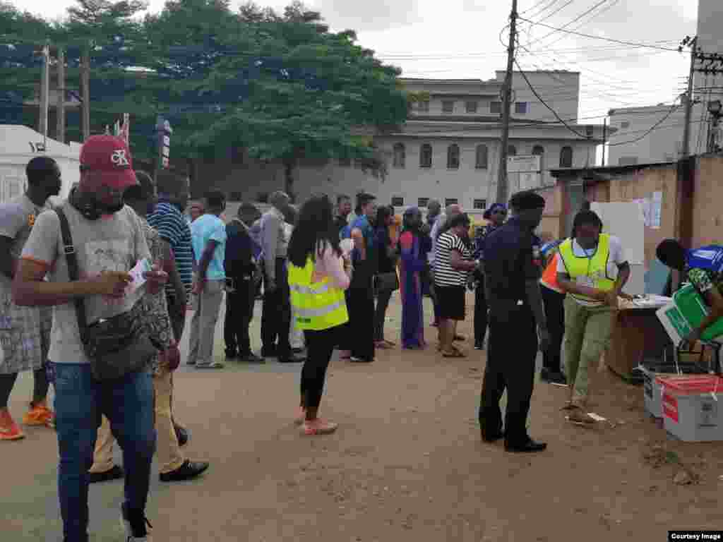 Kwa mujibu wa mwandishi wa VOA upigaji kura ulikuwa umechelewa kwa saa moja katika eneo la Ikeja GRA, Lagos, Nigeria.